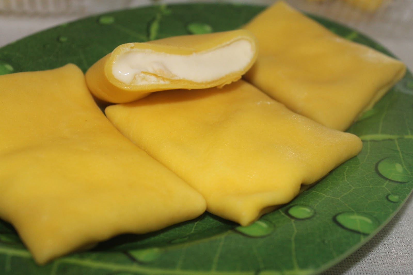 masukkan ke dalam kulit kemudian lapis kan isi durian lenyek